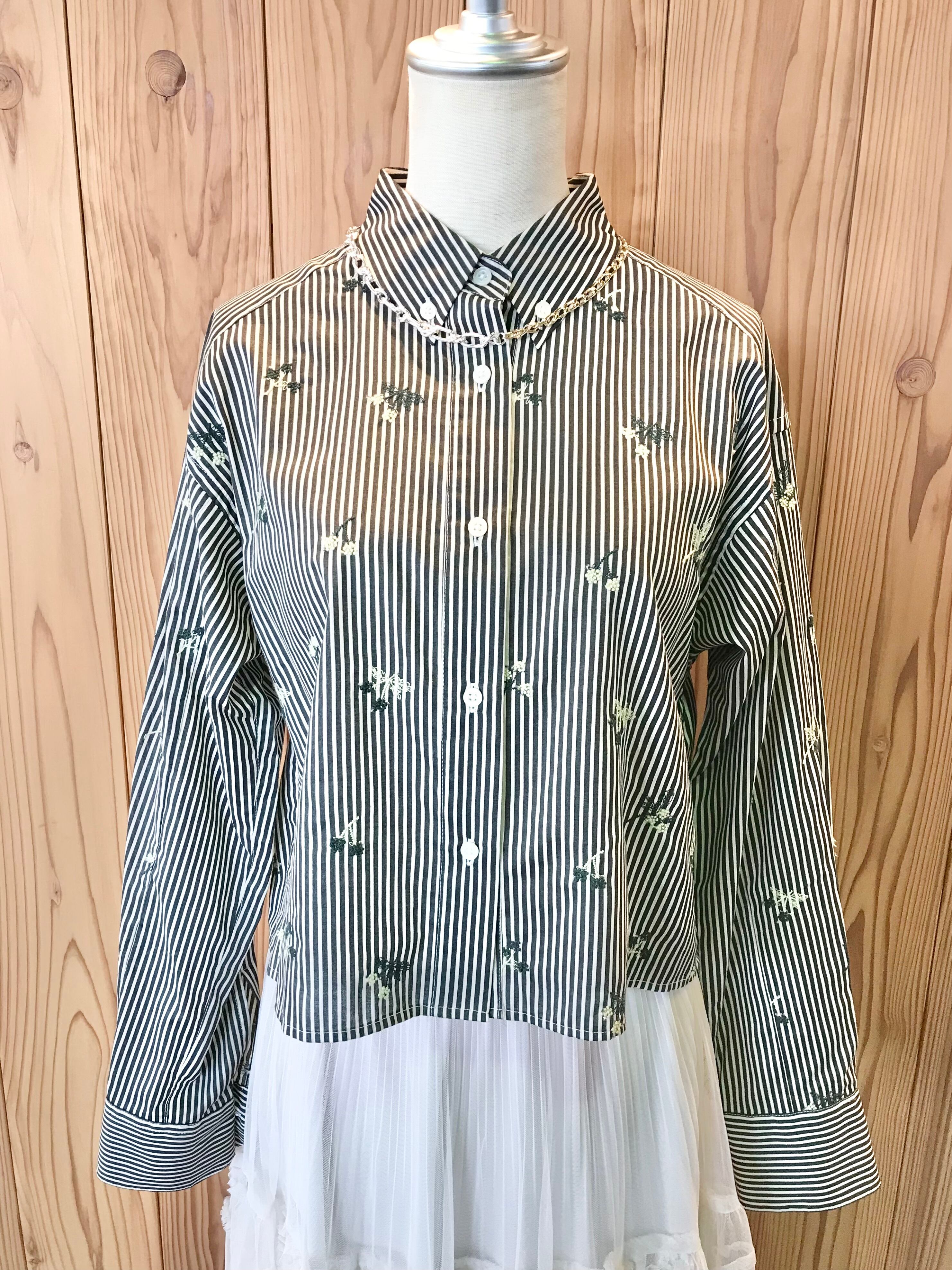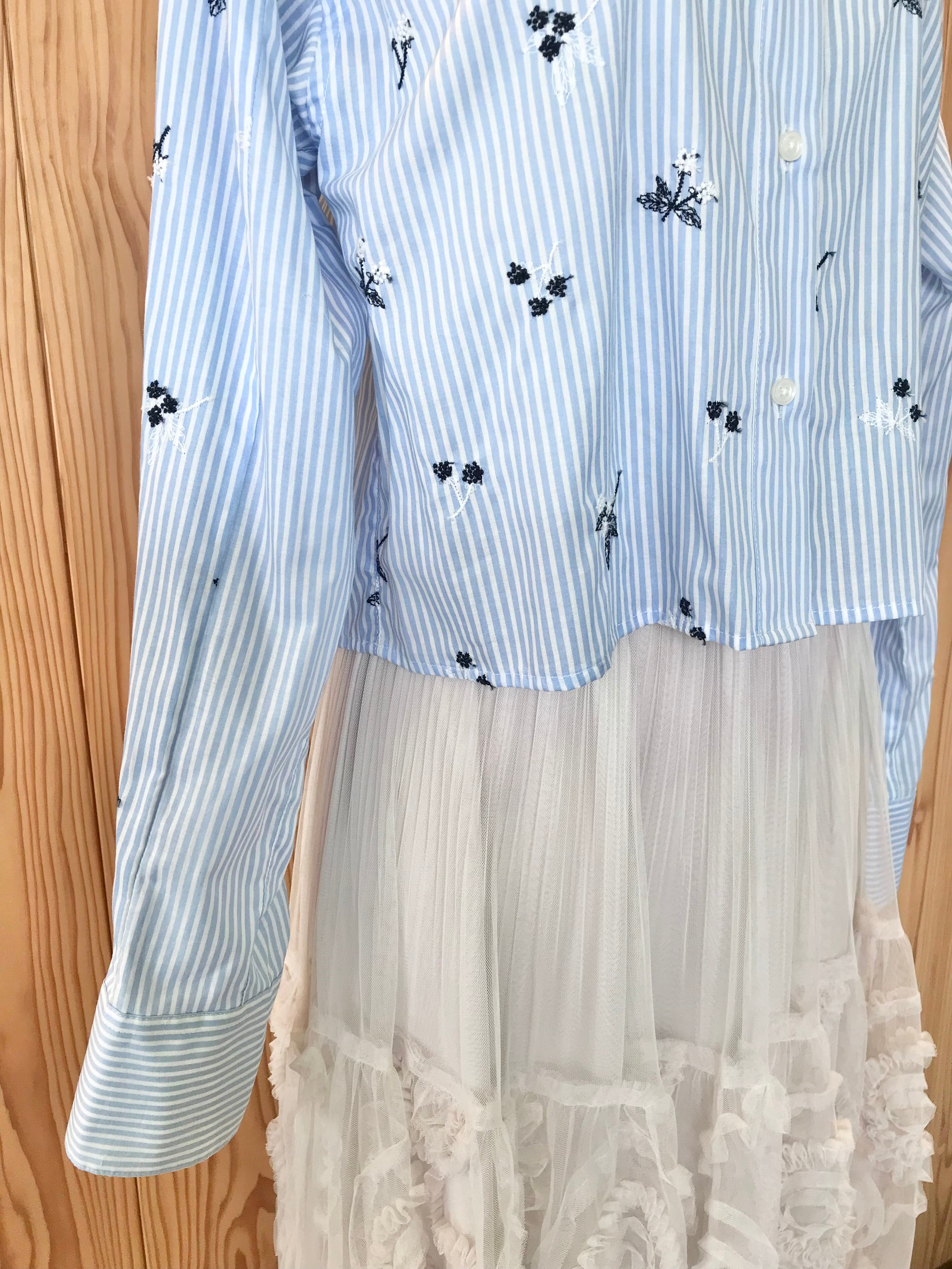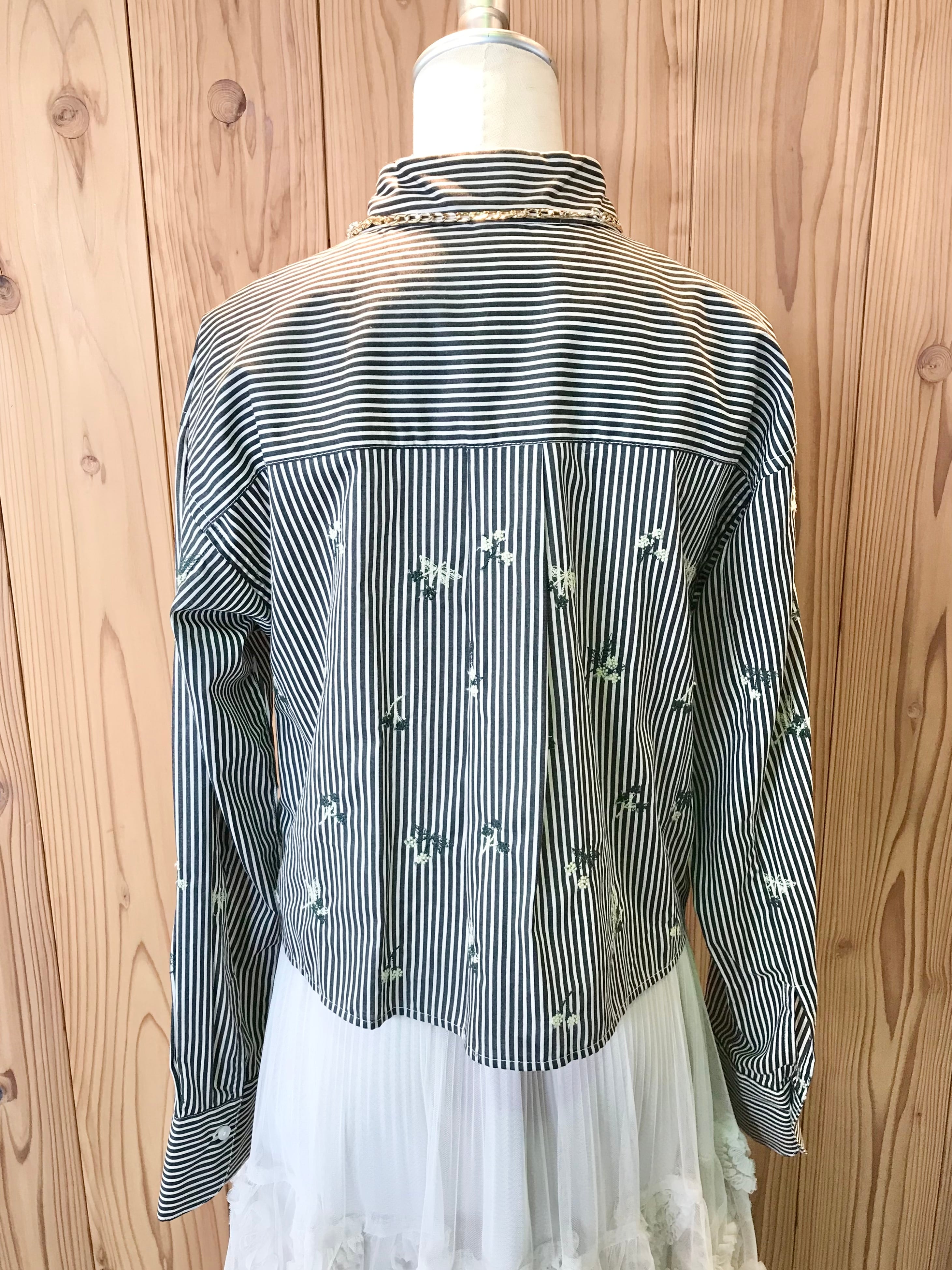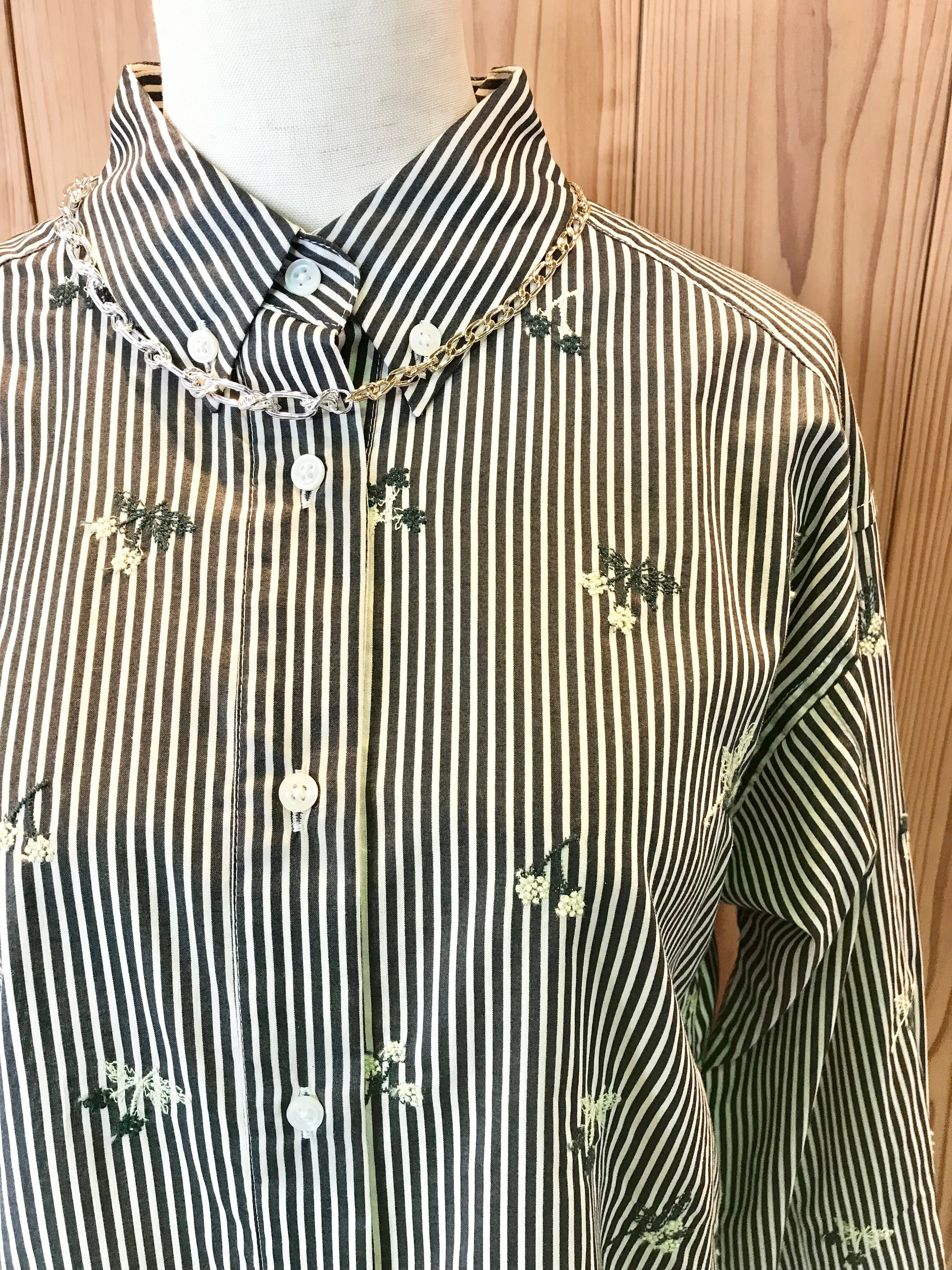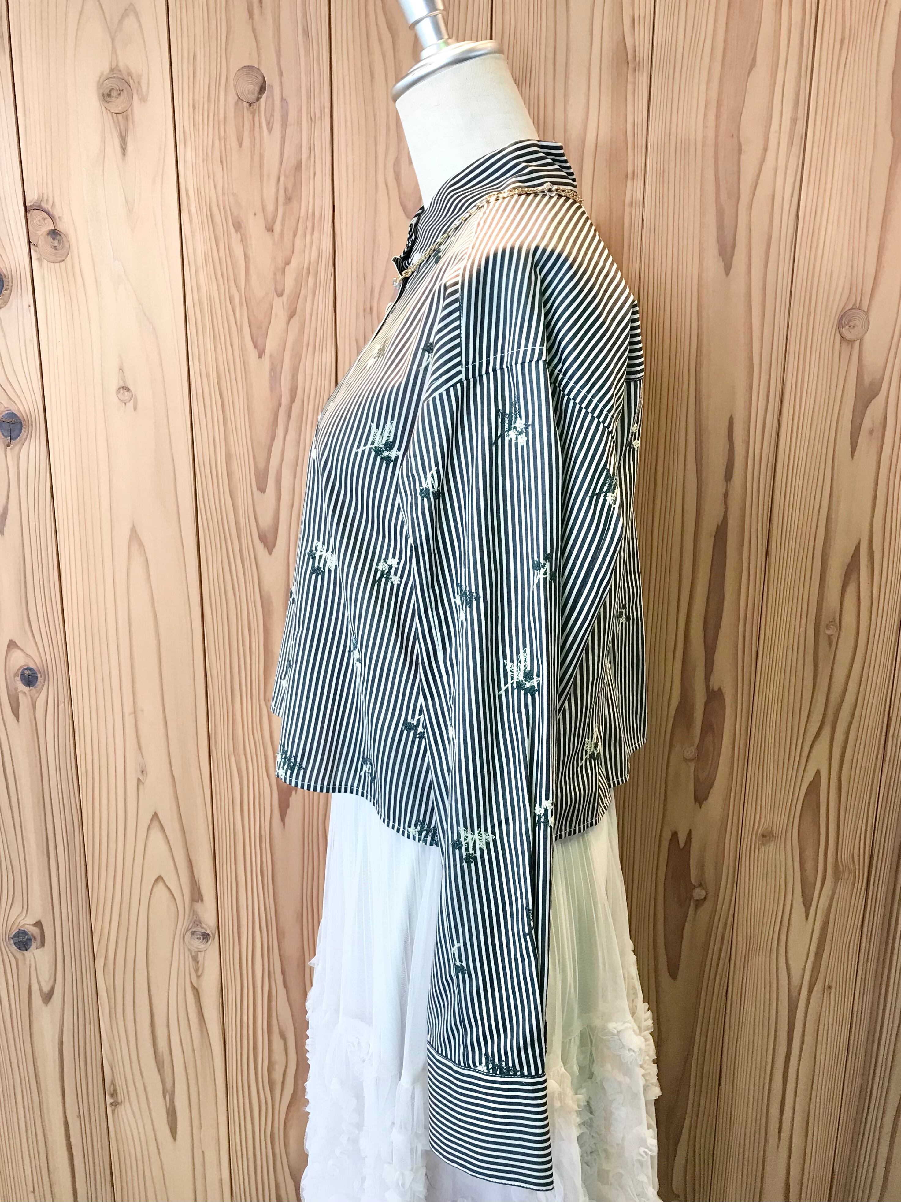 【BRAHMIN】刺繍ストライプクロップドシャツ