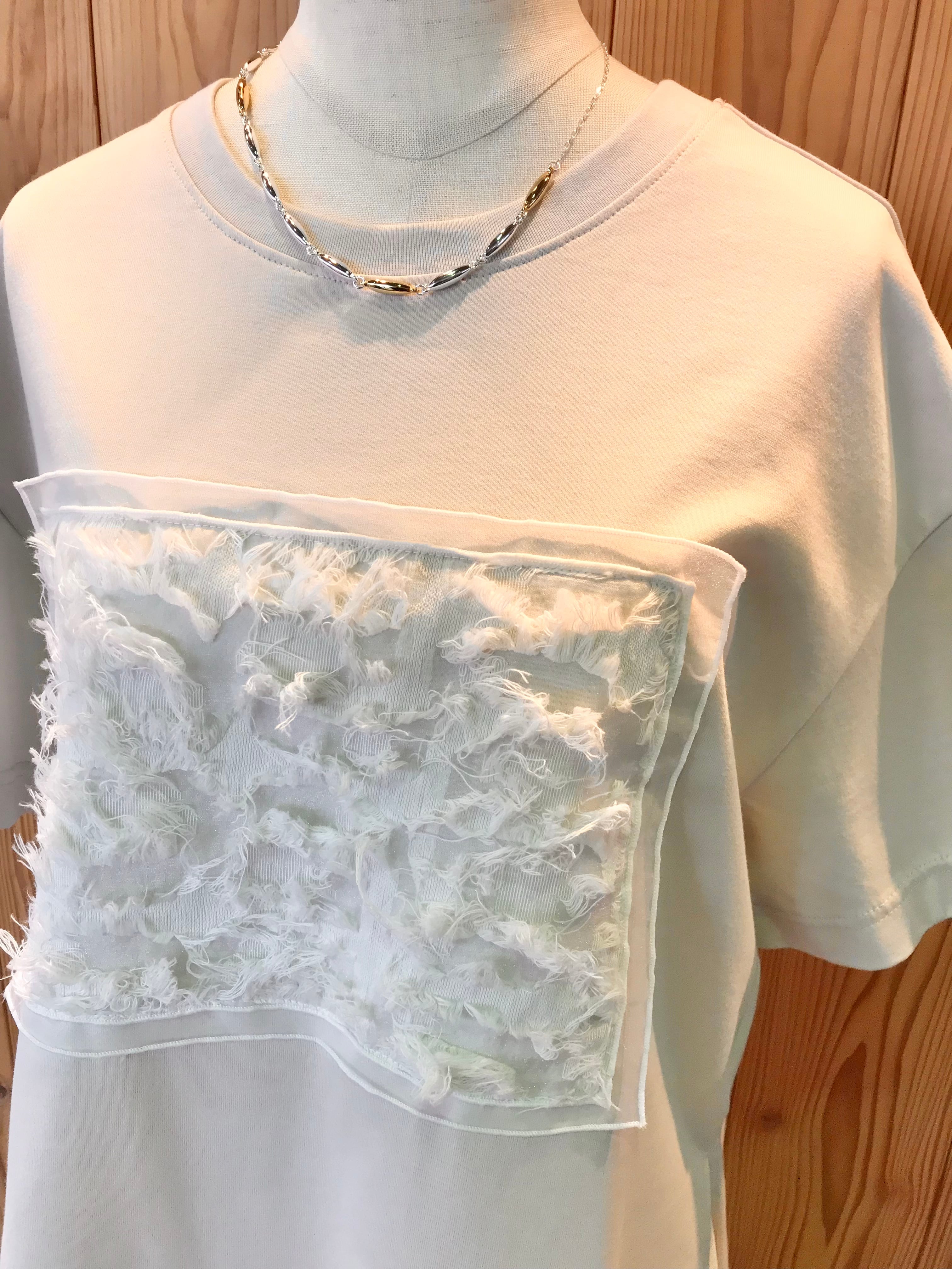 異素材コンビTシャツ。