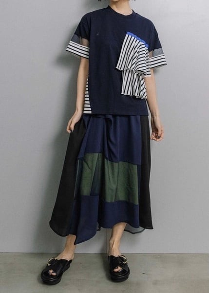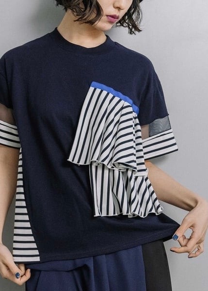 【MARECHAL TERRE】コンビネーションラッフルTシャツ